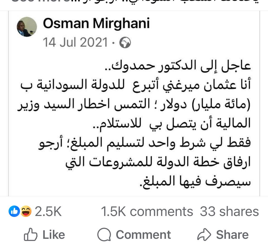 أجدد عرضي السابق للدكتور حمدوك.. بالشرط ذاته.. ابراز هذه الخطة.