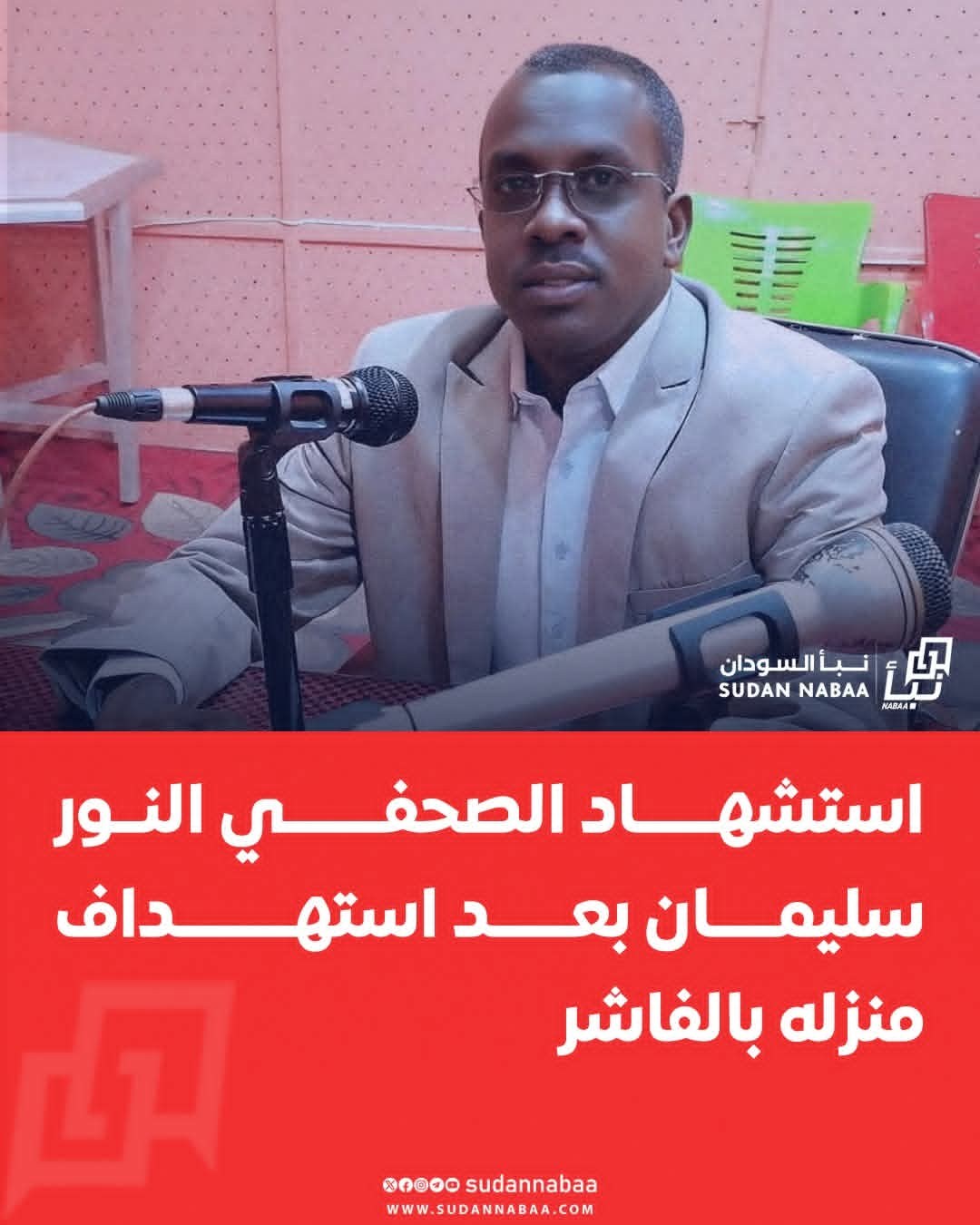 استشهد الصحفي النور سليمان النور صباح اليوم متأثراً بجراحه، بعد إصابته أمس جراء استهداف مليشيا الدعم السريع منزله بمدينة الفاشر، بولاية شمال دارفور.