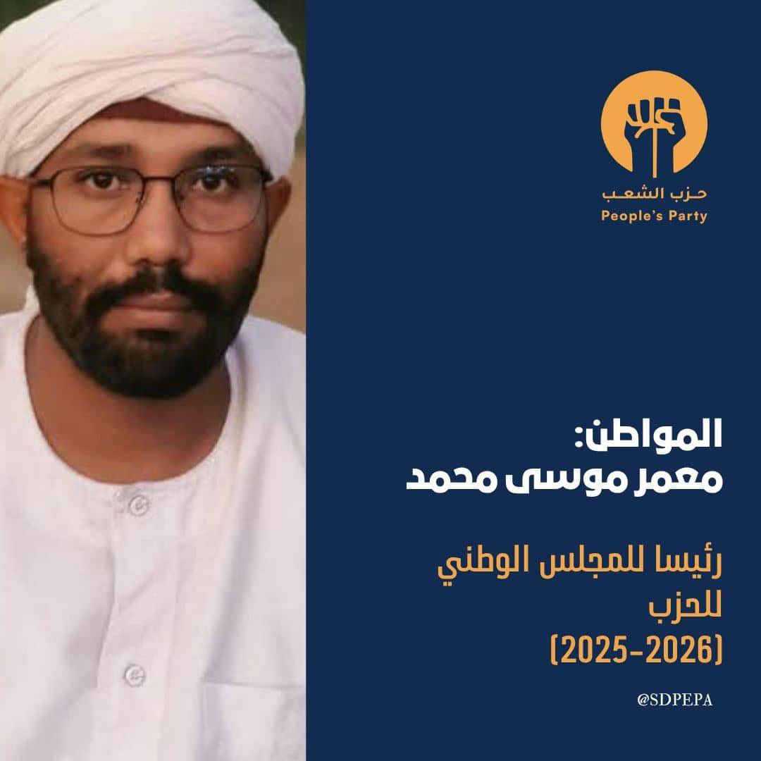 تعلن اللجنة المنظمة لعملية الانتقال بحزب الشعب السوداني عن انتخاب المواطن معمر موسى محمد رئيسا للمجلس الوطني