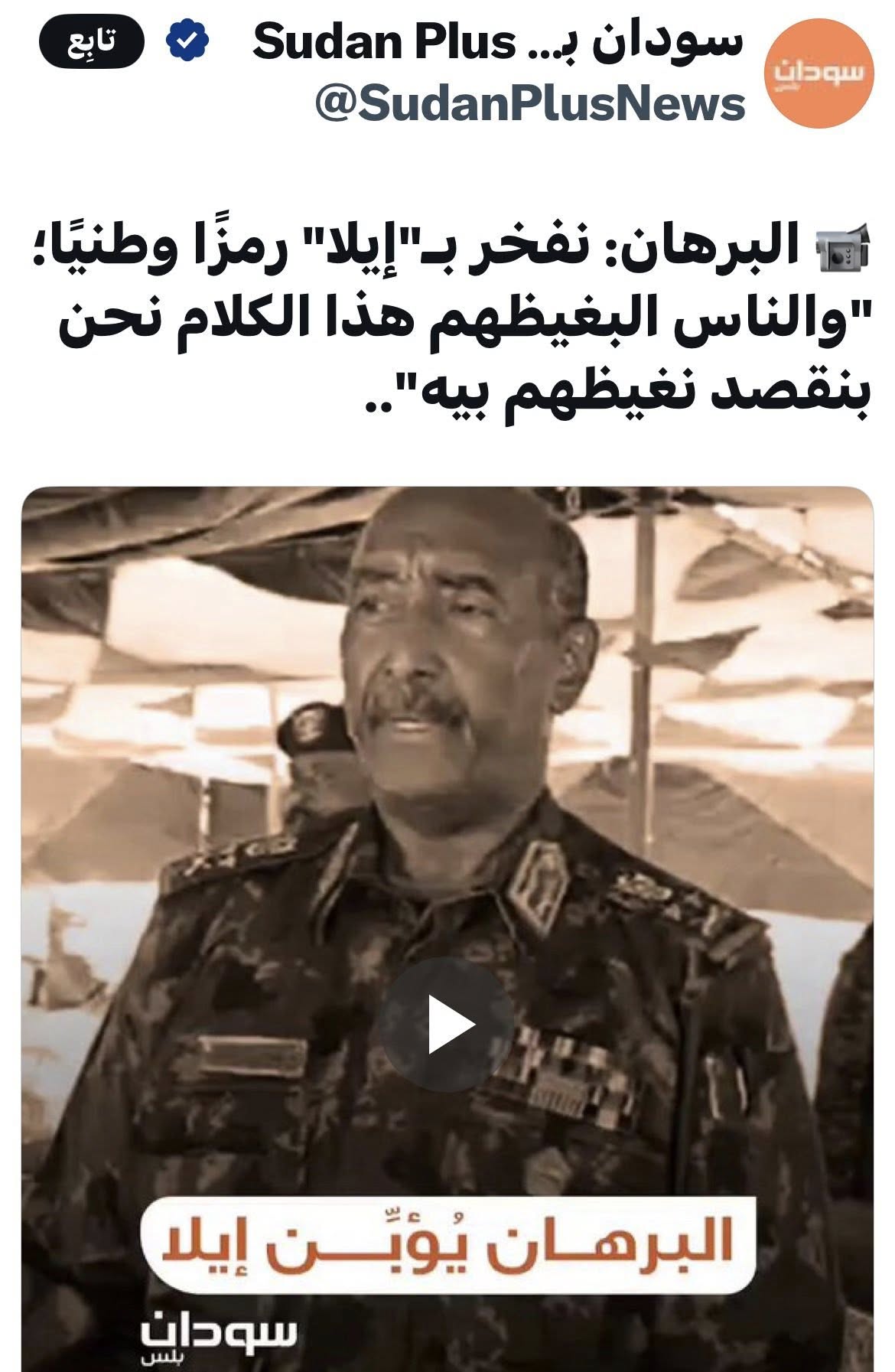 البرهان بعد : ايلا رمز وطني واللي بيغيظهم الكلام دا يتغاظوا .