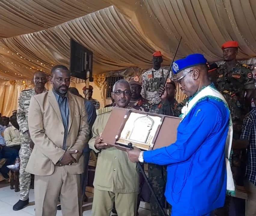سنار 15-7-2025 (سونا) نظمت اللجنة العليا لتكريم العميد شرطة حقوقي فيصل أحمد محمد الفكي مدير شرطة محلية سنار اليوم احتفال بمناسبة تكريمه ووداعه، بتشريف والي سنار المكلف اللواء ركن (م) الزبير حسن السيد، وحضور المدير التنفيذي لمحلية سنار وعددا من القيادات بالمحلية والولاية .