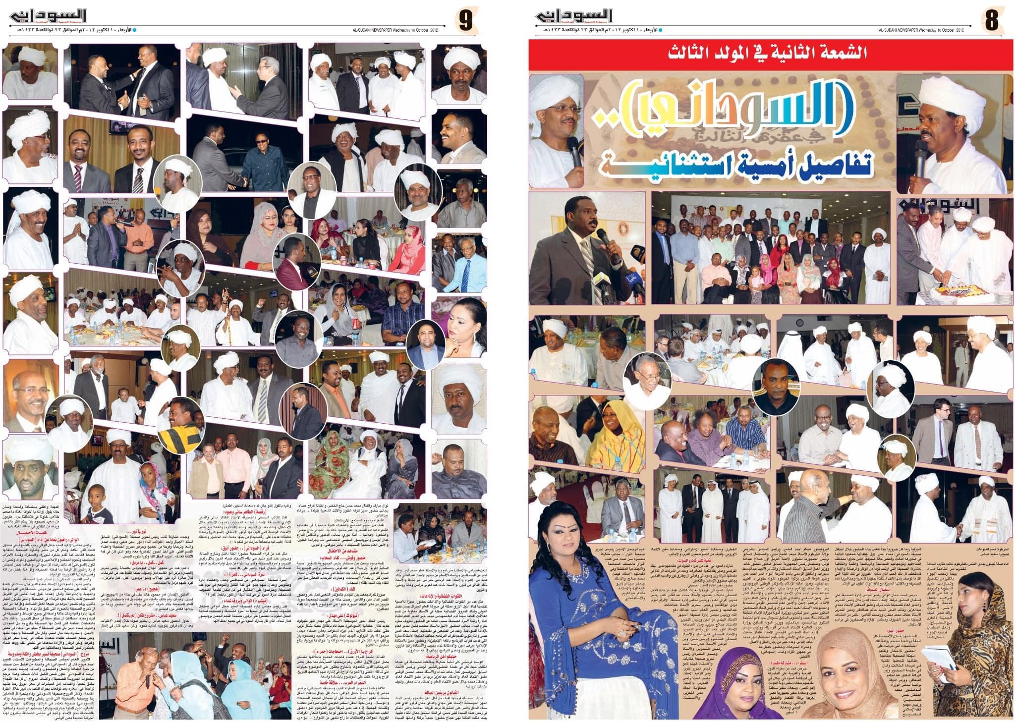*في ١٠ /١٠ / ٢٠١٠، كان انطلاق مسيرتي في رئاسة تحرير صحيفة (السوداني) تحت قيادة الرجل الكريم، النبيل، المفضال، السيد جمال محمد عبد الله الوالي، وكوكبة من أميز الصَّحفيين والكُتّاب والفنيين والإداريين والمُدقِّقين والعُمّال، جمعتنا بهم خوّة صادقة ونبيلة ونجاحات باهرة وساطعة في عوالم جوائز التّمييز والإبداع والتفوُّق في التوزيع والتأثير، لتصعد (السوداني) من القاع إلى القمة.
