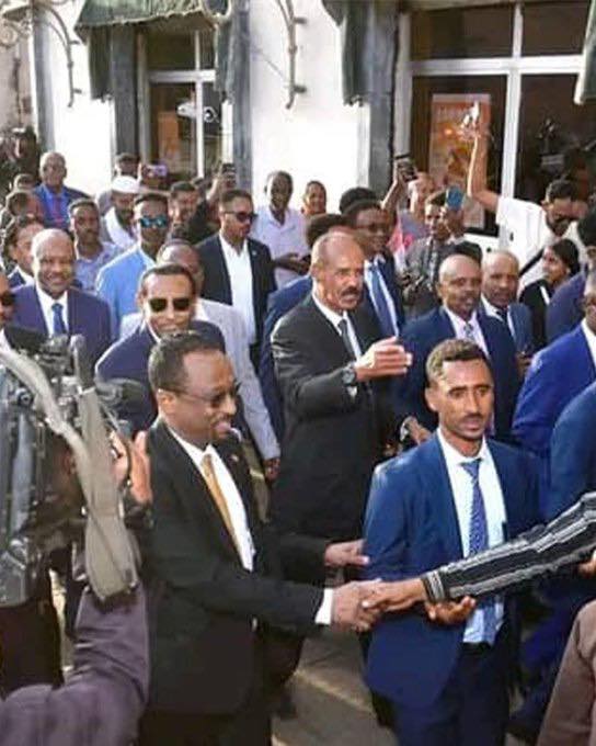 هنا في اللقطة دي الاعيسر بشلاقته كسر بديهيات في البروتكول وقام بشلاقته يسابق رئيس وزراءه وسابق حتى رئيس الدولة المستضيفة وجاري يكابس في الناس ، وغالباً الاضينة كامل ادريس حذا حذوه وظهر بتلك الصورة يفتش ايادي تسلم عليه .