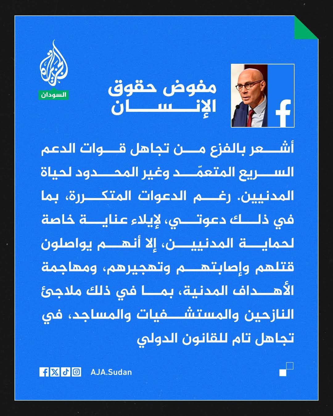 المفوض السامي للأمم المتحدة لحقوق الإنسان، فولكر تورك: أشعر بالفزع من تجاهل قوات الدعم السريع المتعمّد وغير المحدود لحياة المدنيين