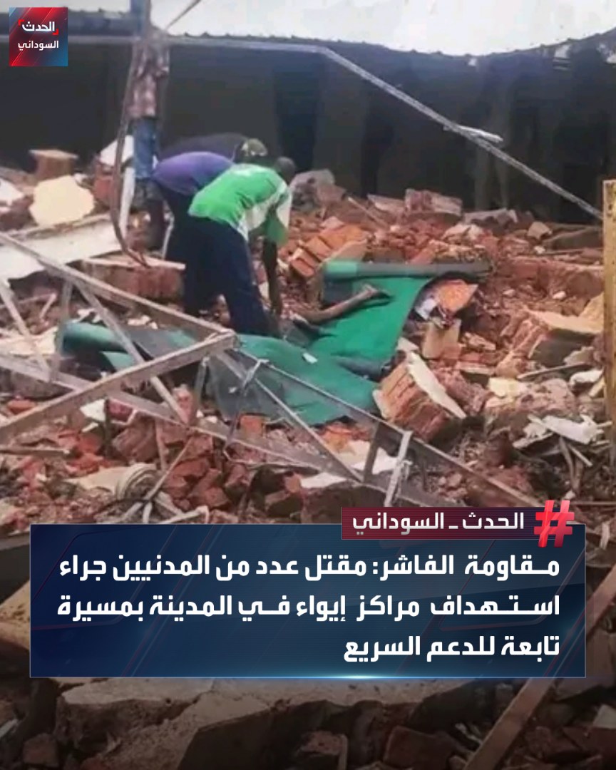 أعلنت لجان مقاومة الفاشر بولاية شمال دارفور عن مقتل عدد كبير من المدنيين بينهم نساء وأطفال، جراء قصف بمسيرة تابعة لقوات الدعم السريع استهدفت مركز إيواء دار الأرقم وجامعة أم درمان الإسلامية بالمدينة، صباح اليوم.