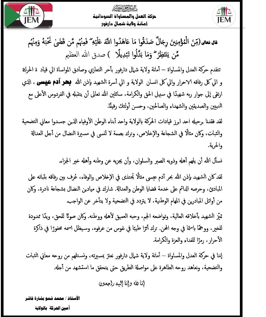 حركة العدل والمساواة Commenting has been turned off for this post. By null Published October 11, 2025 Share SHARE Facebook Twitter Pinterest LinkedIn[ad_1] Commenting has been turned off for this post. [ad_2] Source Facebook Twitter Pinterest LinkedIn Share This Article Facebook Twitter Email Print Previous Article « الجريدة » هذا الصباح … عبّرت بمرارة عن واقع القطاع الصحي قائلة: «الذي يقتل الن… Next Article من بيان حركة المستقبل للإصلاح و التنمية حول إنهاء حرب العدوان و الإبادة على الش… Leave a Comment Leave a Reply Cancel replyYour email address will not be published. Required fields are marked *Comment * Name * Email * Website Save my name, email, and website in this browser for the next time I comment. Δ SearchSearchRecent Postsأكرمنا الله صباح اليوم الأحد بلقاء إخوةٍ كرام، على ضفة النيل الأزرق، حيث شاي الش… أعلن بنك السودان المركزي في منشور إدارة السياسات رقم (2025/15) رفع الاحتكار عن ا… ندوة بعنوان: القانون الدولي والسيادة الوطنية قراءة في موقف السودان من لجنة تقصي … والي نهر النيل تستقبل وزير الموارد البشرية والرعاية الاجتماعية الوزير يشيد بالأ… كامل ادريس: رئيس اللجنة السياسية لمؤسسات الدولة السودانية. Recent CommentsNo comments to show.