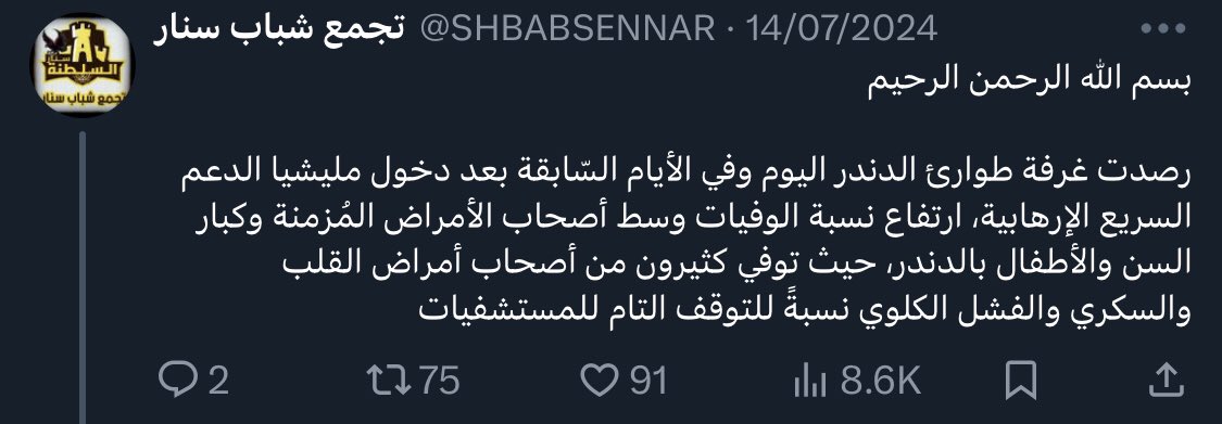 نتاج لهذا قامت مليشيات الدعم السريع بإنتهاك حقوق انسان الولاية و عطلت المستشفيات…
