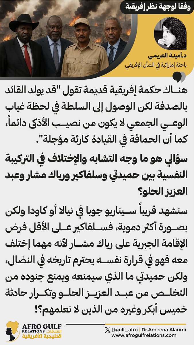 سؤالي هو ما وجه التشابه والإختلاف في التركيبة النفسية بين “حميدتي” و”سلفاكير ميارديت” و “رياك مشار ” و “عبد العزيز الحلو” ؟