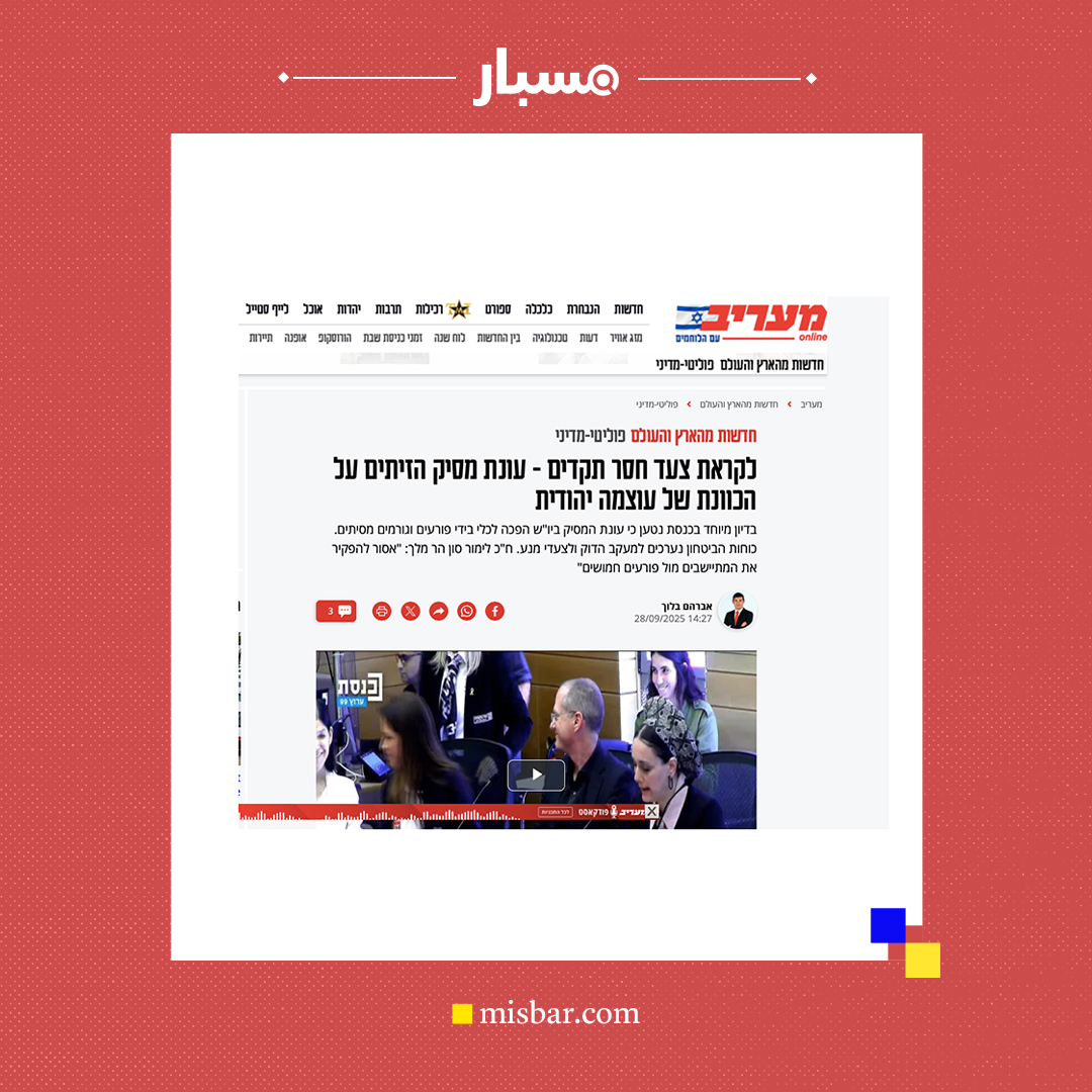 وجاء ذلك خلال جلسة خاصة عقدتها لجنة الأمن القومي في الكنيست، بمبادرة من عضوته ليمور سون هار ملك من حزب “عوتسما يهوديت”، لمناقشة ما وصفته وسائل الإعلام الإسرائيلية بـ”تزايد أحداث العنف خلال موسم الزيتون”.