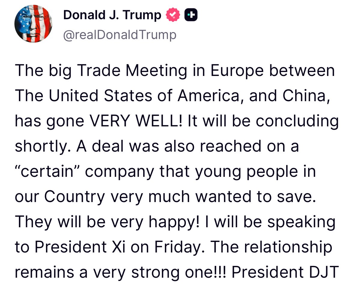 🚨 #ترمب يلمح إلى التوصل إلى اتفاق بشأن مصير تيك توك في اميركا مع #الصين “سيسعد الشباب في اميركا الذين يريدون إنقاذ الشركة”(لم يذكر تيك توك بالاسم)