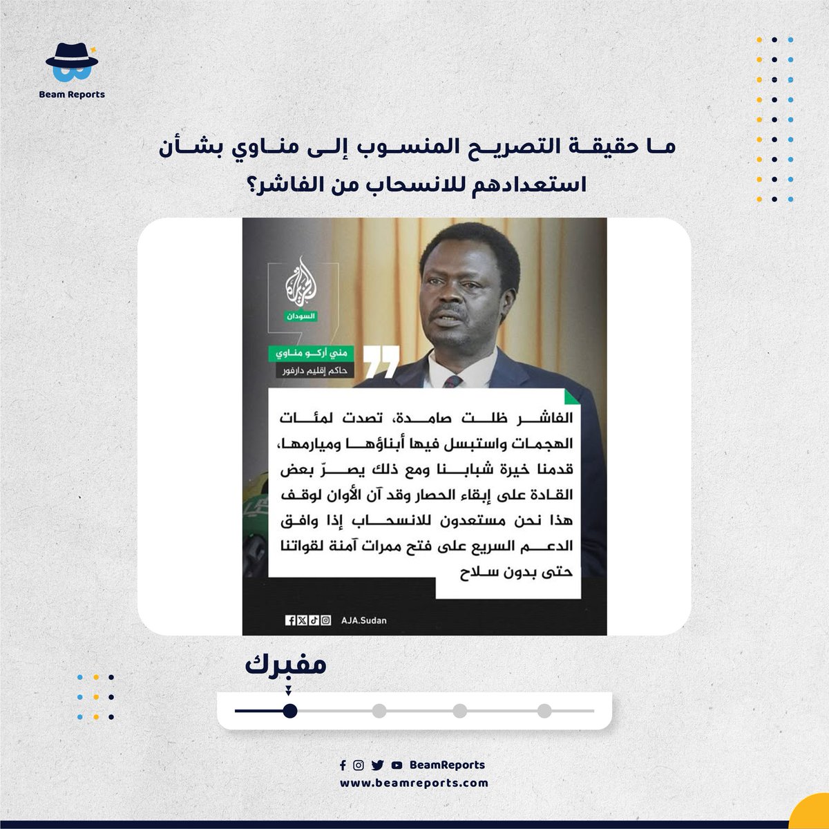 ما حقيقة التصريح المنسوب إلى مناوي بشأن استعدادهم للانسحاب من الفاشر؟