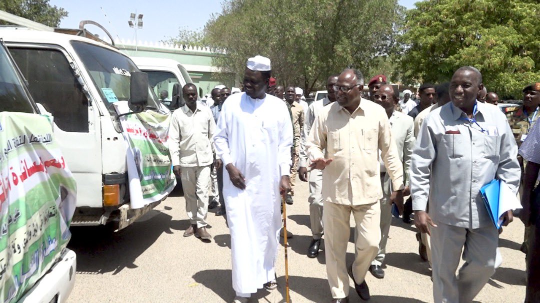 لحظات ارسال قافلة تبرعت بها جنوب دارفور لاهالي جبل مون وكرينك وغيرها في غرب دارفور ، يضاف لذلك تصديق مبلغ قدره خمسة ملايين جنيه مساهمة من حاكم الاقليم لايجاد مأوي بديل للنازحين الذين يقبعون في جامعة الجنينة منذ فترة طويلة