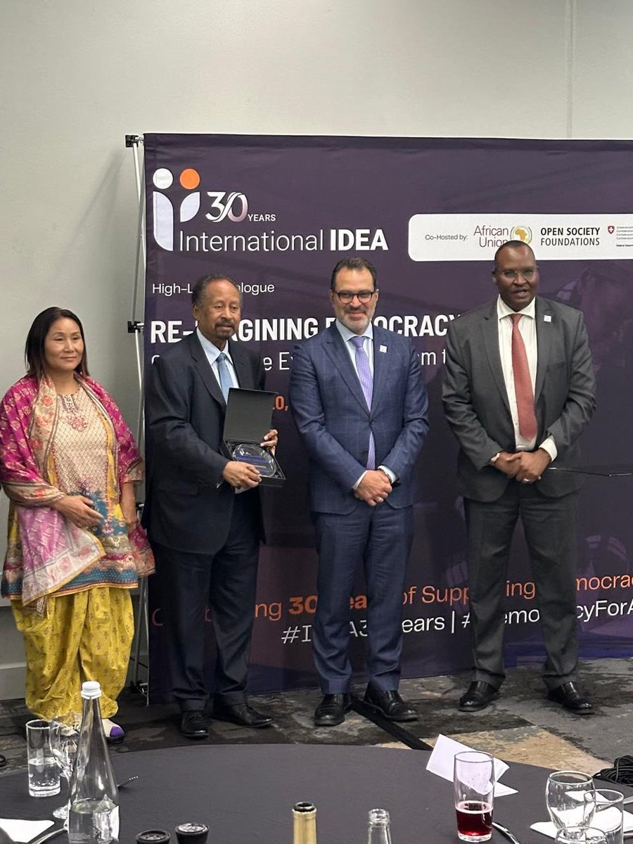 وجاء هذا التكريم في إطار احتفالات المعهد بمرور ثلاثين عاماً على تأسيسه، والتي أُقيمت في مدينة بريتوريا بجنوب أفريقيا، بمشاركة عددا من الشخصيات الدولية وصنّاع السياسات والفاعلين في قضايا الديمقراطية والحوكمة حول العالم.