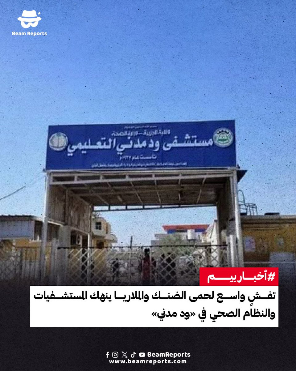 كشف مصدر طبي في مدينة ود مدني عاصمة ولاية الجزيرة لـ«بيم ريبورتس»، الخميس، عن تفاقم خطير في انتشار حمى الضنك والملاريا بالمدينة، مؤكدًا أن المستشفى يستقبل يوميًا ما بين 100 إلى 150 حالة دخول جديدة. وأشار إلى أن المعامل الخارجية في «شارع الدكاترة» تجري ما يقارب ألف فحص دم كامل يوميًا، وتظهر النتائج إصابة أكثر من 60% من الحالات، فيما تستقبل المستوصفات الخارجية بين 15 إلى 20 مريضًا يوميًا «بنسبة إصابة مؤكدة تتجاوز 60%».