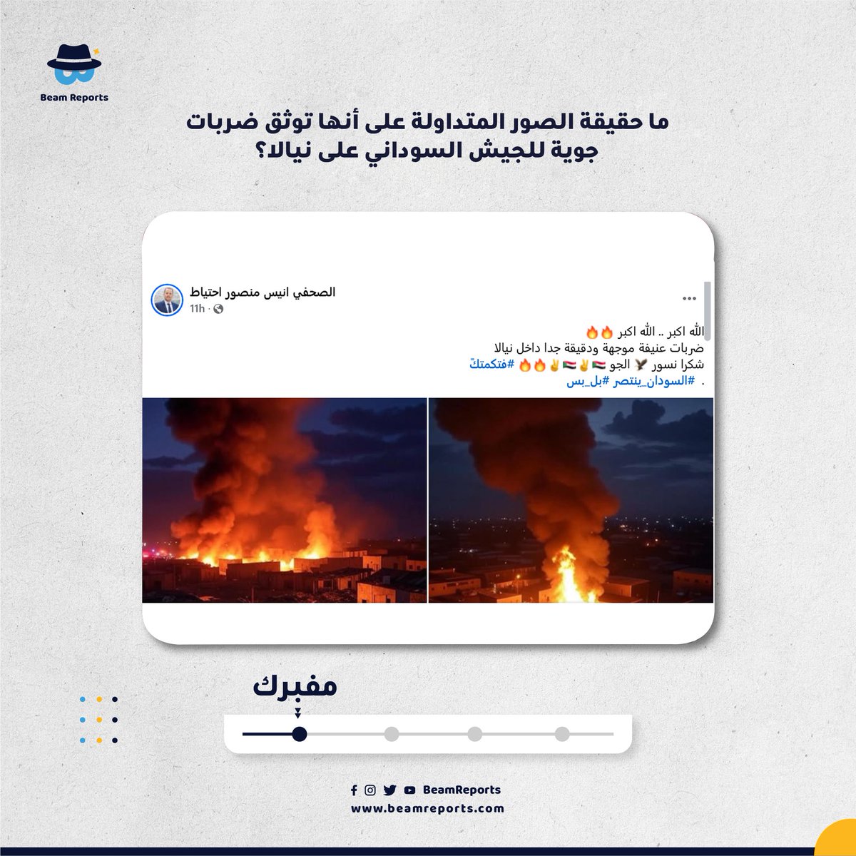 ما حقيقة الصور المتداولة على أنها توثق ضربات جوية للجيش السوداني على نيالا؟