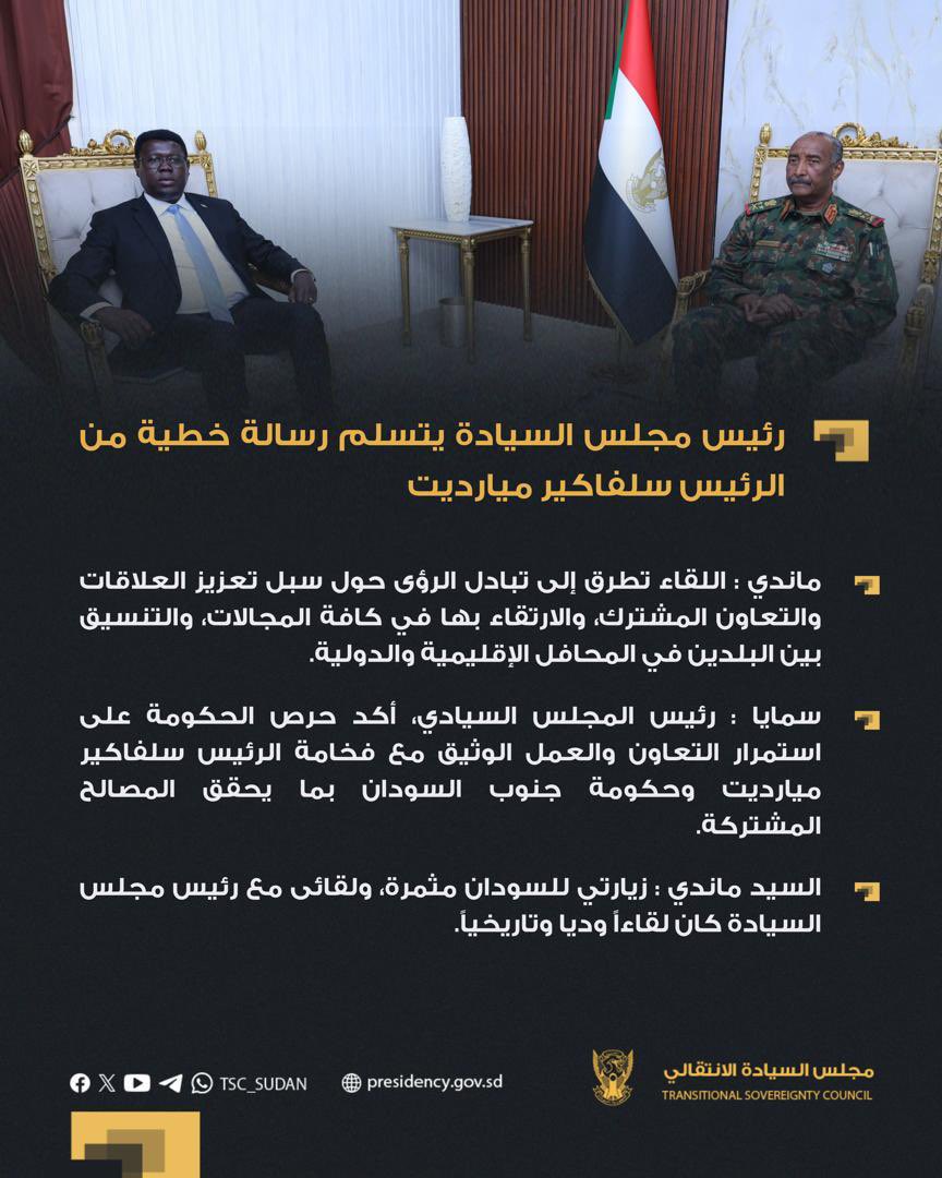 مجلس السيادة رئيس مجلس السيادة يتسلم رسالة خطية من الرئيس سلفاكير ميارديت بورتسودان ٥-١٠-٢٠… By null Published October 14, 2025 Share SHARE Facebook Twitter Pinterest LinkedIn[ad_1] ⭕️ رئيس مجلس السيادة يتسلم رسالة خطية من الرئيس سلفاكير ميارديت بورتسودان ٥-١٠-٢٠٢٥م [ad_2] Source by مجلس السيادة الإنتقالي – السودان Facebook Twitter Pinterest LinkedIn Share This Article Facebook Twitter Email Print Previous Article … Next Article ضربة المعاقيل و هجوم الجنجويد الإنتحاري على نهر النيل الأن بث مباشر على يوتيوب … Leave a Comment Leave a Reply Cancel replyYour email address will not be published. Required fields are marked *Comment * Name * Email * Website Save my name, email, and website in this browser for the next time I comment. Δ SearchSearchRecent Postsأكرمنا الله صباح اليوم الأحد بلقاء إخوةٍ كرام، على ضفة النيل الأزرق، حيث شاي الش… أعلن بنك السودان المركزي في منشور إدارة السياسات رقم (2025/15) رفع الاحتكار عن ا… ندوة بعنوان: القانون الدولي والسيادة الوطنية قراءة في موقف السودان من لجنة تقصي … والي نهر النيل تستقبل وزير الموارد البشرية والرعاية الاجتماعية الوزير يشيد بالأ… كامل ادريس: رئيس اللجنة السياسية لمؤسسات الدولة السودانية. Recent CommentsNo comments to show.