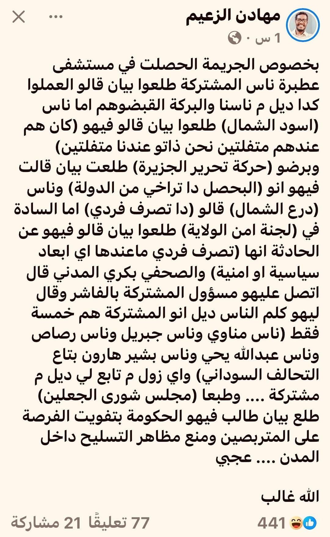 هشام عباس لو بترص طوب علشان تبني مزيرة ما تطلع بعدد المليشيات دي !! By null Published October 14, 2025 Share SHARE Facebook Twitter Pinterest LinkedIn لو بترص طوب علشان تبني مزيرة ما تطلع بعدد المليشيات دي !! Source Facebook Twitter Pinterest LinkedIn Share This Article Facebook Twitter Email Print Previous Article بعد أن تحولت إلى مدينة أشباح.. مواطنون بحي جبرة يحتفلون بعودة نبض الحياة إلى الم… Next Article قرر بنك السودان ايقاف البنك الاسلامي السوداني عن مزاولة اعمال النقد الاجنبي Leave a Comment Leave a Reply Cancel replyYour email address will not be published. Required fields are marked *Comment * Name * Email * Website Save my name, email, and website in this browser for the next time I comment. Δ SearchSearchRecent Postsوزير المعادن يتلقي برئيس وأعضاء اتحاد المعدنيين الصينيين ويثمن دورهم في ترويج ال… شغل جديد عندما يكون هنالك هجمات بالمسيرات من قبل المتمردين ، تأكدوا بأن بالمقابل هنالك تق… الأسبوع في دقيقة.. شاهدوا مقدمة #فوق_السلطة مع نزيه الأحدب.. السفير الصيني يؤكد أن قمة ترمب وشي فرصة للتعاون وتحقيق الازدهار المشترك بين الصي… Recent CommentsNo comments to show.