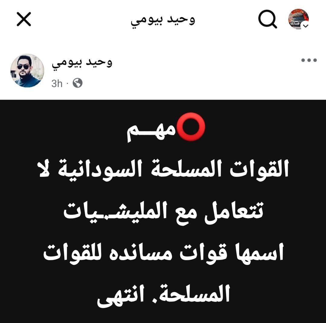 الشريف الحمدابي وأصدر القائد العام للقوات المسلحة وحيد بيومي التعليمات .. الجيش بستاهل عشان ب… By null Published October 15, 2025 Share SHARE Facebook Twitter Pinterest LinkedIn وأصدر القائد العام للقوات المسلحة وحيد بيومي التعليمات .. الجيش بستاهل عشان بختار أهل زي ديل .. #المرياع_ماينوم #لإقتلاع #إرادة_الحركة_الجماهيرية_هي_الحل🇸🇩✌🏻 Source Facebook Twitter Pinterest LinkedIn Share This Article Facebook Twitter Email Print Previous Article \ud83d\udece\ufe0f \u064a\u062d\u062f\u062b \u0627\u0644\u0622\u0646 \ud83d\udec… Next Article اخواننا في المؤتمر الوطني مصرين يعيشوا في كونتينات بعيدا عن الشعب ويجاهدوا براهم… Leave a Comment Leave a Reply Cancel replyYour email address will not be published. Required fields are marked *Comment * Name * Email * Website Save my name, email, and website in this browser for the next time I comment. Δ SearchSearchRecent PostsGreat insights from @RobbieGramer @alexbward on Trump’s NSC process, including t… في #تقرير_واشنطن : #ترامب ضد الجامعات والطلاب الدوليون في قلب المواجهة… فماذا يح… Press Release: … SENEGAL | As a sign of its rapprochement with President Bassirou Diomaye Faye, t… الكلمات لن تكفي حقكم ابداً… Recent CommentsNo comments to show.