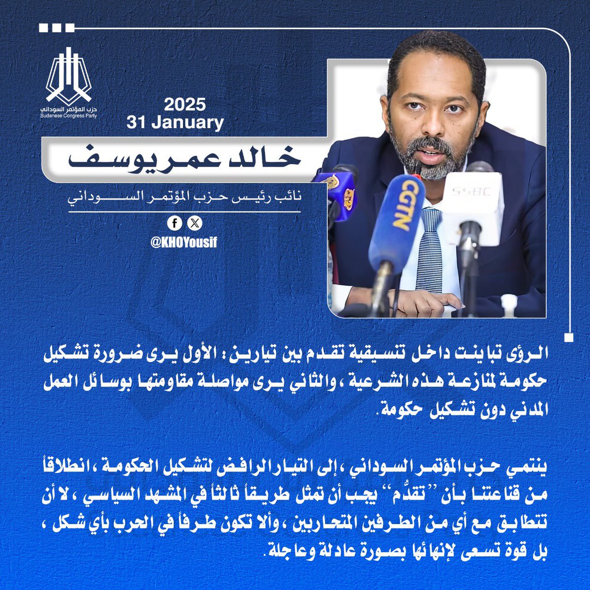 م.خالد عمر يوسف @KHOYousif نائب رئيس الحزب وعضو الهيئة القيادية لتنسيقية القوى الديمقراطية المدنية (تقدم)