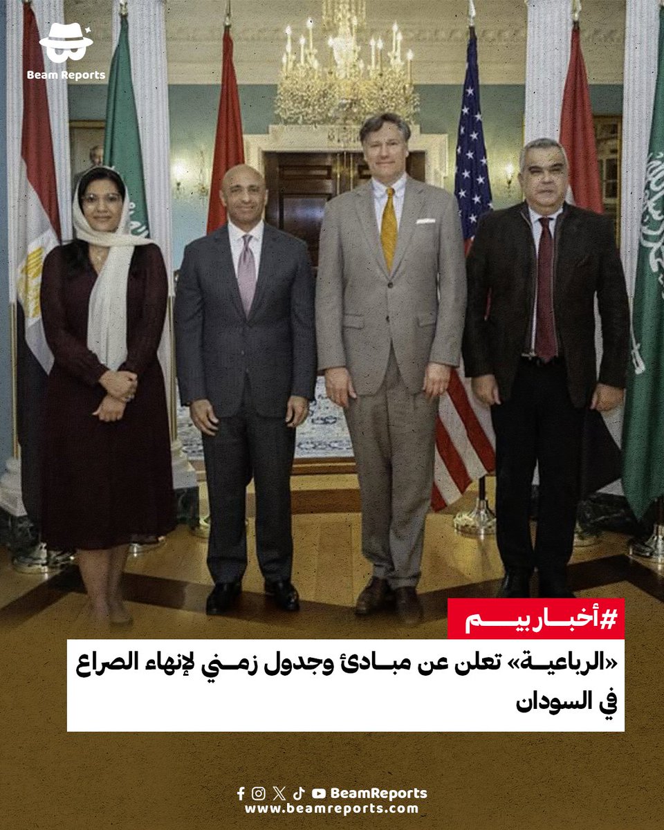 أجرى وزراء الخارجية في دول الرباعية مصر والمملكة العربية السعودية ودولة الإمارات والولايات المتحدة، الجمعة، مشاورات مكثفة أفضت إلى التزام بمجموعة مشتركة من المبادئ، بالإضافة إلى جدول زمني لإنهاء الصراع في السودان، وفقًا لبيان مشترك أصدرته المجموعة. وشدد البيان على أن مستقبل الحكم في السودان متروك للشعب السوداني ليقرره من خلال عملية انتقال شاملة وشفافة، لا تخضع لسيطرة أي طرف متحارب.