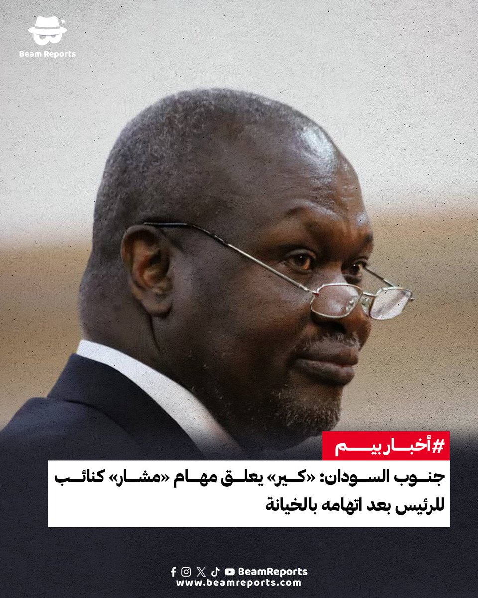 أصدر رئيس جنوب السودان سلفا كير مرسومًا بتعليق مهام نائبه الأول رياك مشار وفق ما أذاعه الراديو الرسمي لأحدث بلد في العالم، من دون تقديم مزيد من التفاصيل وذلك بعد ساعات من إعلان وزير العدل، جوزيف غينغ، عن توجيه اتهامات بالقتل والخيانة وارتكاب جرائم ضد الإنسانية لمشار على خلفية تورطه المزعوم في هجمات شنتها ميليشيا إثنية ضد القوات الفيدرالية في مارس الماضي.