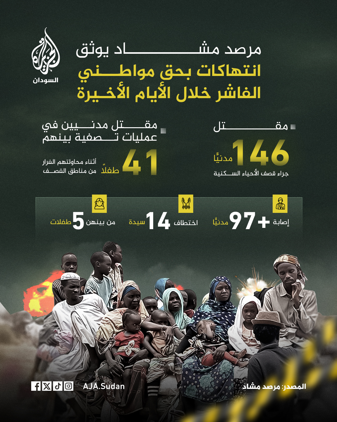 الجزيرة مرصد مشاد يوثق انتهاكات بحق مواطني الفاشر خلال الأيام الأخيرة #الجزيرة_السودان By null Published October 17, 2025 Share SHARE Facebook Twitter Pinterest LinkedIn مرصد مشاد يوثق انتهاكات بحق مواطني الفاشر خلال الأيام الأخيرة #الجزيرة_السودان Source Facebook Twitter Pinterest LinkedIn Share This Article Facebook Twitter Email Print Previous Article الرئيس الأميركي ترمب استضاف كبار رجال الأعمال لجمع تبرعات لبناء قاعة احتفالات جد… Next Article لن نترك الذاكرة تتثاءب Leave a Comment Leave a Reply Cancel replyYour email address will not be published. Required fields are marked *Comment * Name * Email * Website Save my name, email, and website in this browser for the next time I comment. Δ SearchSearchRecent PostsIf Vice President @Mike_Pence comes through for us, we will win the Presidency. … This is pure AI made by Grok … I have to agree with Amjed on the false equivalency that the international commu… وزير الدفاع يصدر امراً للسماح لقوات الحرس الوطني بحمل السلاح في واشنطن (بحسب ab… … Recent CommentsNo comments to show.