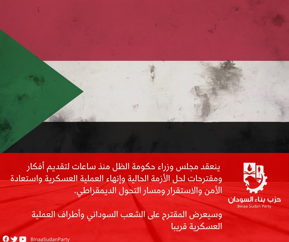 ينعقد مجلس وزراء حكومة الظل منذ ساعات لتقديم أفكار ومقترحات لحل الأزمة الحالية وإنهاء العملية العسكرية واستعادة الأمن والاستقرار ومسار التحول الديمقراطي.