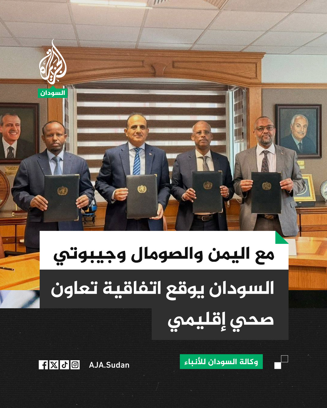 تهدف إلى تعزيز التنسيق الإقليمي في مجالات تحريك الموارد ودراسة الخطط الصحية والتصدي للأوبئة.. #السودان يوقع اتفاقية تعاون مشترك في مجال الصحة مع اليمن والصومال وجيبوتي