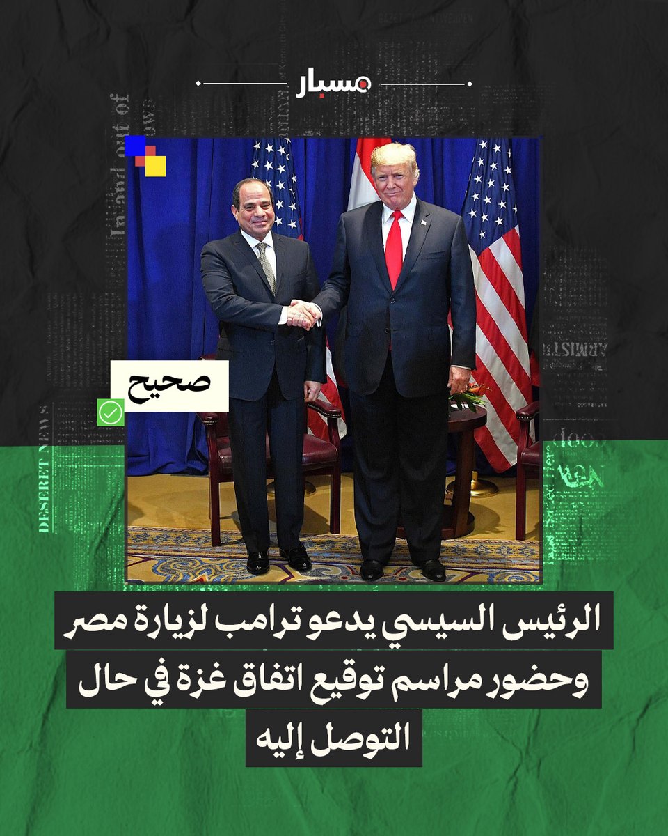 🟢 وجه الرئيس المصري عبد الفتاح السيسي دعوة إلى نظيره الأميركي دونالد ترامب لحضور مراسم توقيع اتفاق غزة في مصر، في حال التوصل إليه، وجاءت الدعوة في كلمة للسيسي خلال حفل تخريج دفعة جديدة من أكاديمية الشرطة، اليوم الأربعاء.