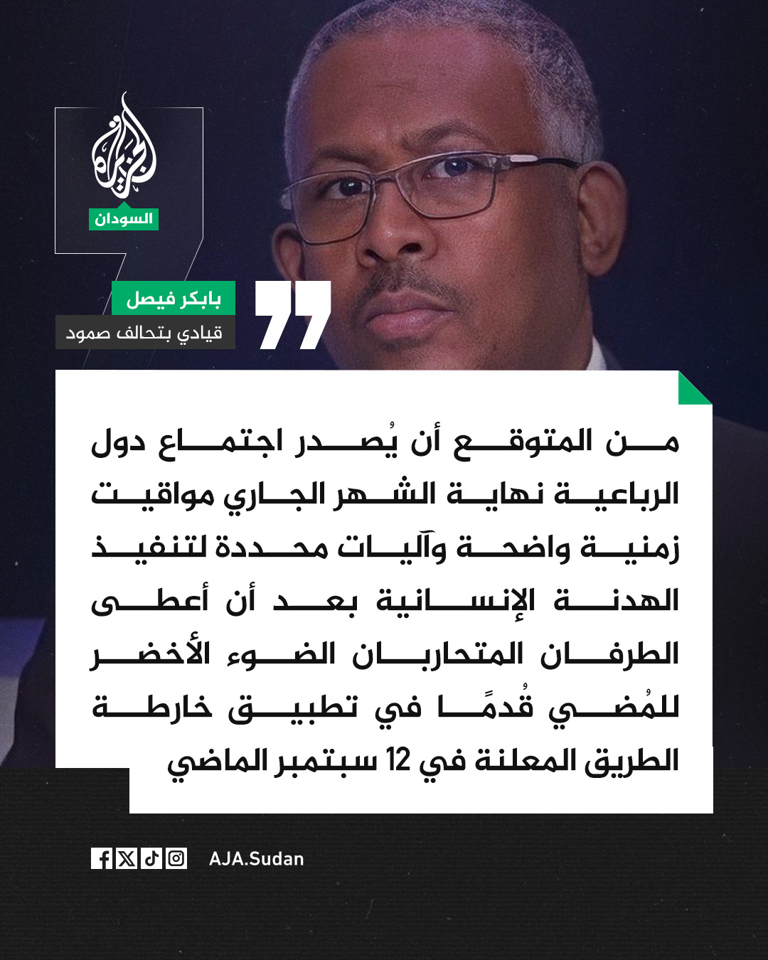 القيادي بتحالف صمود بابكر فيصل: أي محاولة لعقد صفقة ثنائية على تقاسم السلطة بين الأطراف المتحاربة لن توقف الحرب بشكل نهائي ولن تحقق سلامًا مستدامًا