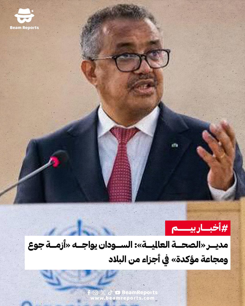 حذّر المدير العام لمنظمة الصحة العالمية تيدروس أدهانوم، السبت، من أن السودان يواجه أزمة جوع متفاقمة، مع تأكيد وجود ظروف مجاعة في أجزاء من البلاد، مشيرًا إلى أنه من المتوقع أن يعاني أكثر من 770 ألف طفل سوء التغذية الحاد الوخيم. كما شدّد على ضرورة رفع الحصار عن الفاشر، قائلًا: «ندعو قوات الدعم السريع إلى رفع الحصار، وندعو جميع أطراف النزاع إلى إنهاء الحرب».