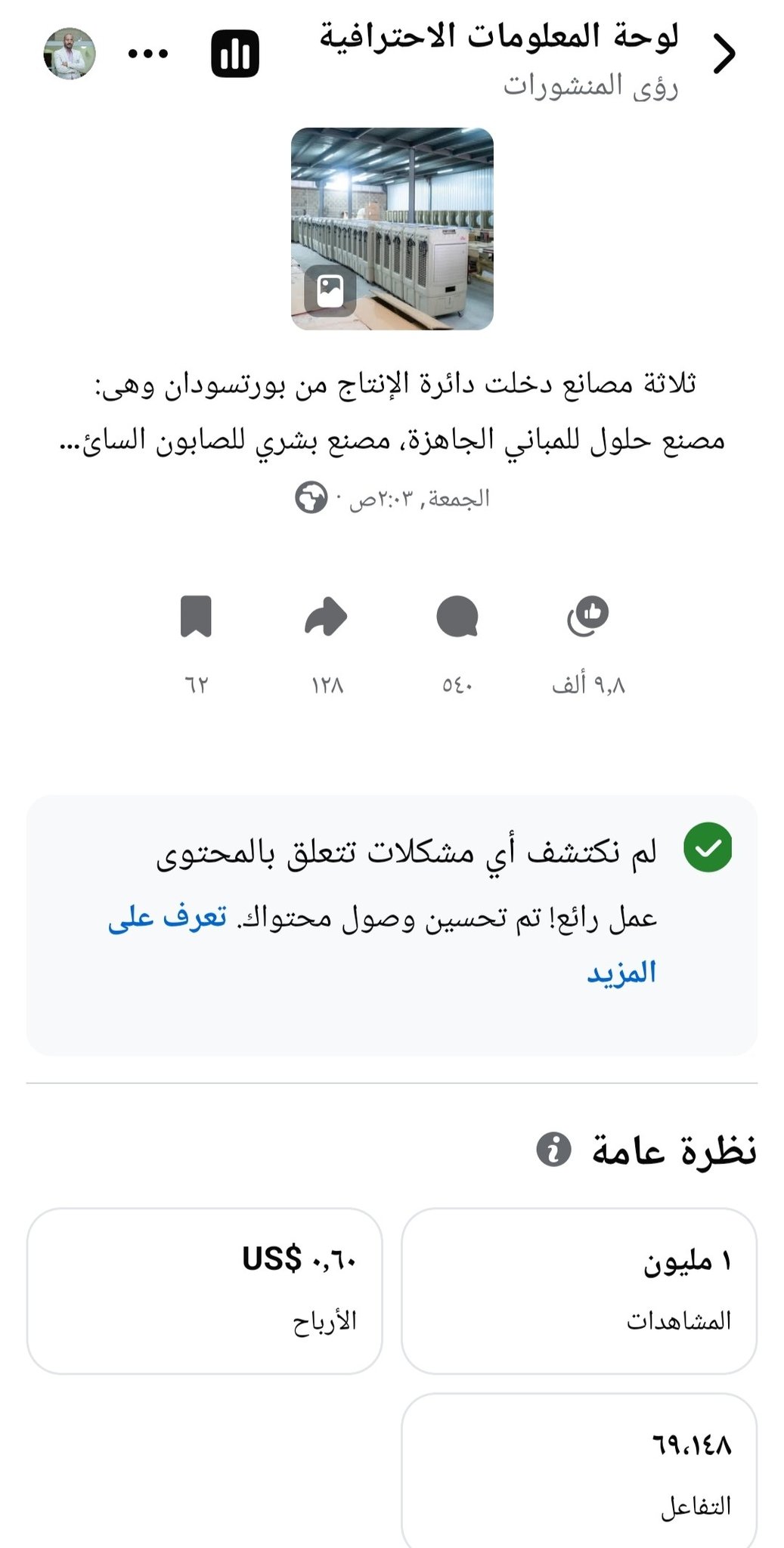 خبر بدء الإنتاج في ثلاثة مصانع ببورتسودان، والذي نشرته على هذه الصفحة، وصل إلى أكثر من مليون مشاهدة. وقد تلقيت عشرات الرسائل على بريدي الخاص، كلها تبحث عن فرص عمل أو توكيلات. صحيح أنني لا أملك إجابات للكثير منها، إلا أن هذا التفاعل الكبير يعني أن الناس في بلادي يستبشرون بعودة الحياة، ويفضلون الكفاح في وطنهم والبحث عن عمل شريف يجنبهم الفقر والفاقة وصعود مراكب اليأس. هذه رسالة واضحة إلى الحكومة والجهات المعنية بضرورة تسهيل عودة المصانع والشركات الوطنية وفتح أبواب الاستثمار والأسواق لتوفير فرص عمل للشباب، ومشاركتهم في عمليات الإعمار.