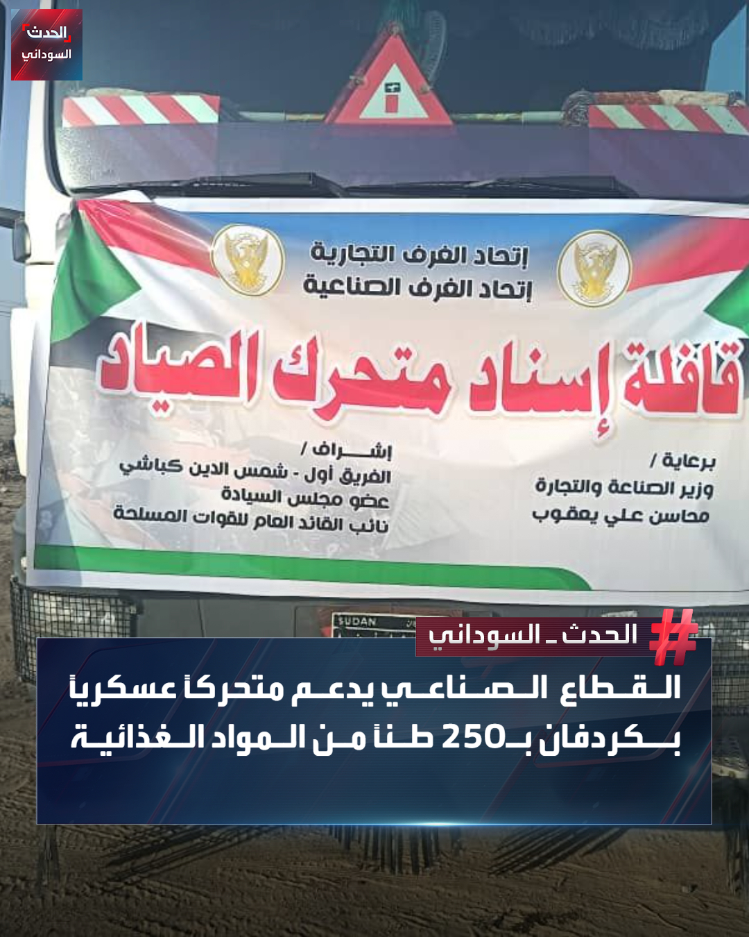 أفادت وكالة السودان للأنباء بدعم القطاع الصناعي للمتحرك العسكري “الصياد” بكردفان بـ250 طنًا من المواد الغذائية المتنوعة.