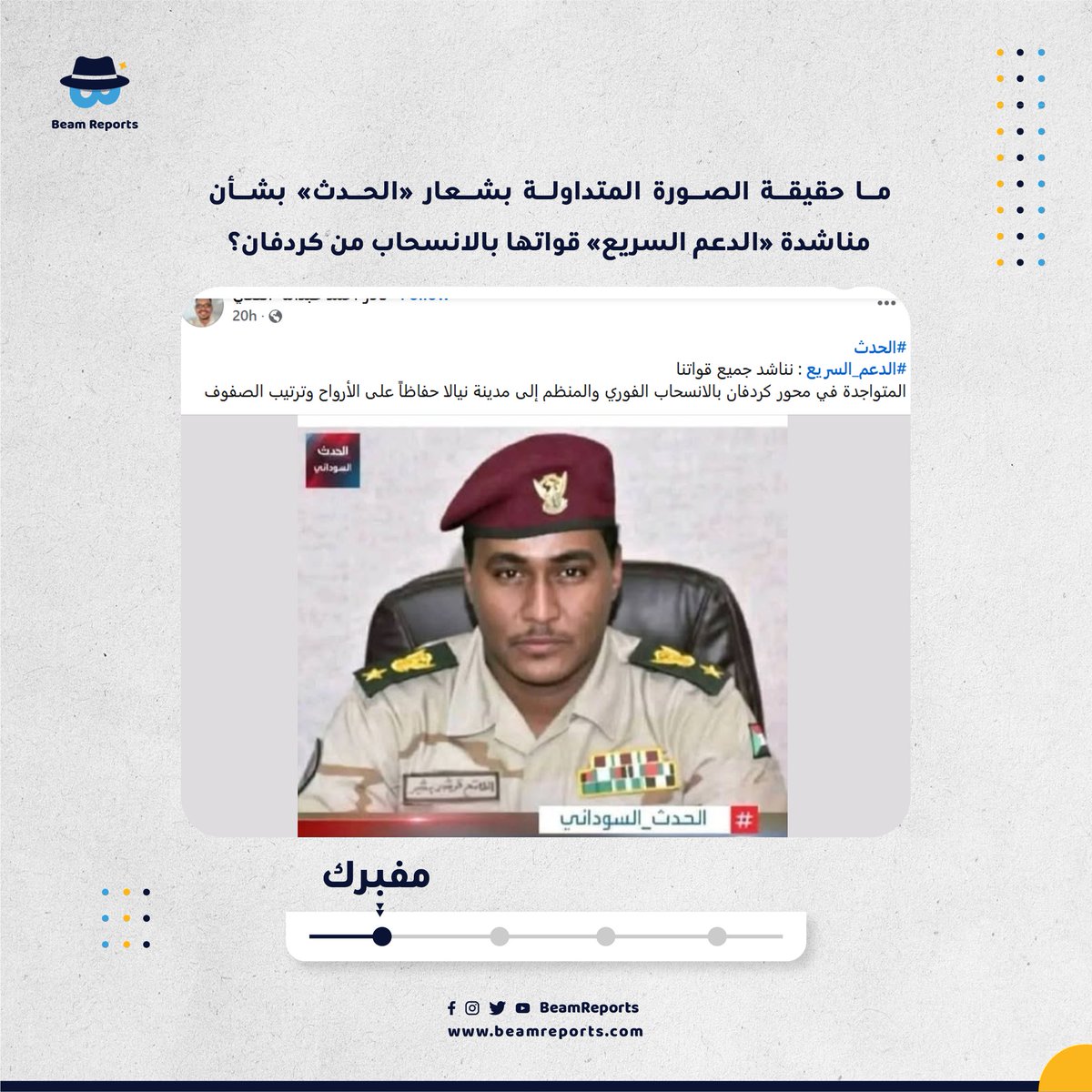 ما حقيقة الصورة المتداولة بشعار «الحدث» بشأن مناشدة «الدعم السريع» قواتها بالانسحاب من كردفان؟