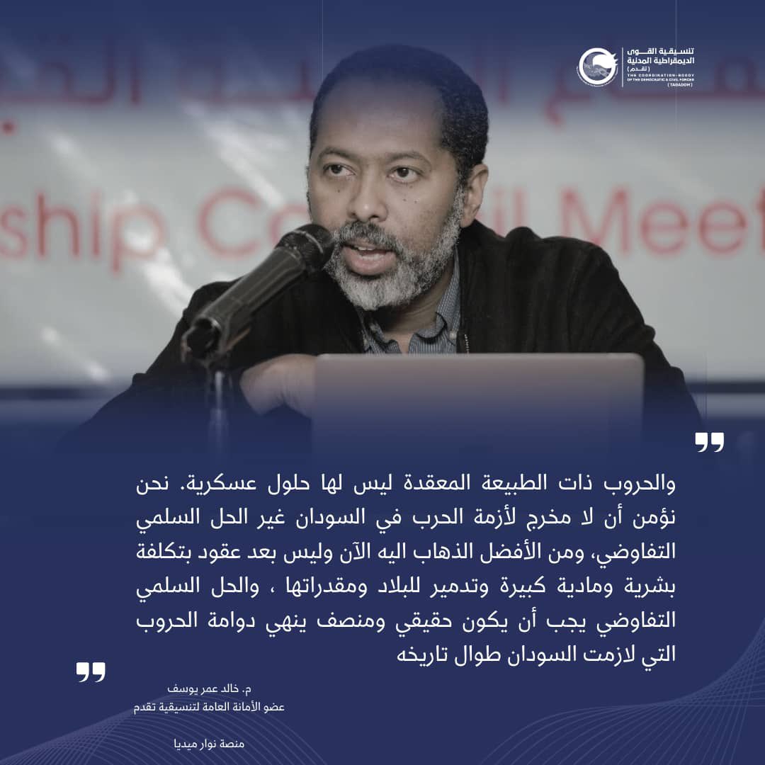 م.خالد عمر يوسف @KHOYousif نائب رئيس حزب المؤتمر السوداني وعضو الأمانة العامة لتنسيقية القوى الديمقراطية المدنية (تقدم)