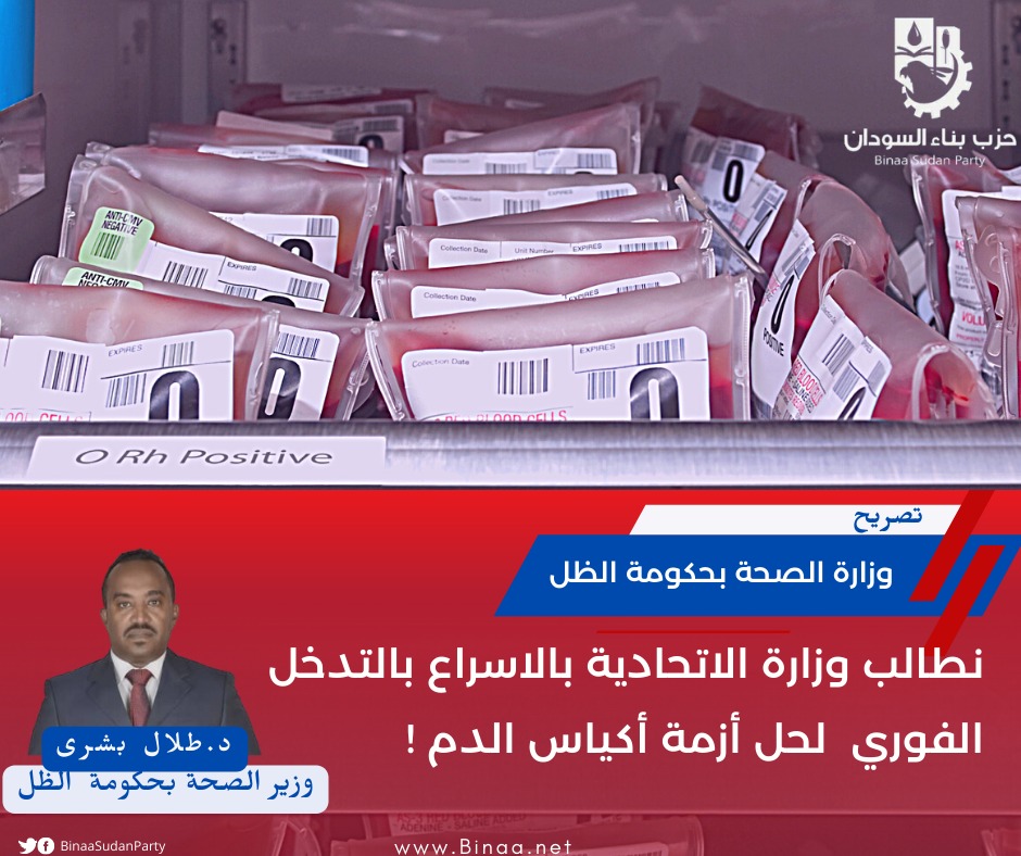 د. طلال البشرى وزير الصحة بحكومة الظل: حل أزمة أكياس الدم مسؤولية وزارة الصحة الاتحادية، ومشاريعنا المقترحة شملت مأمونية الدم ومشتقاته وسلامة عمليات نقله