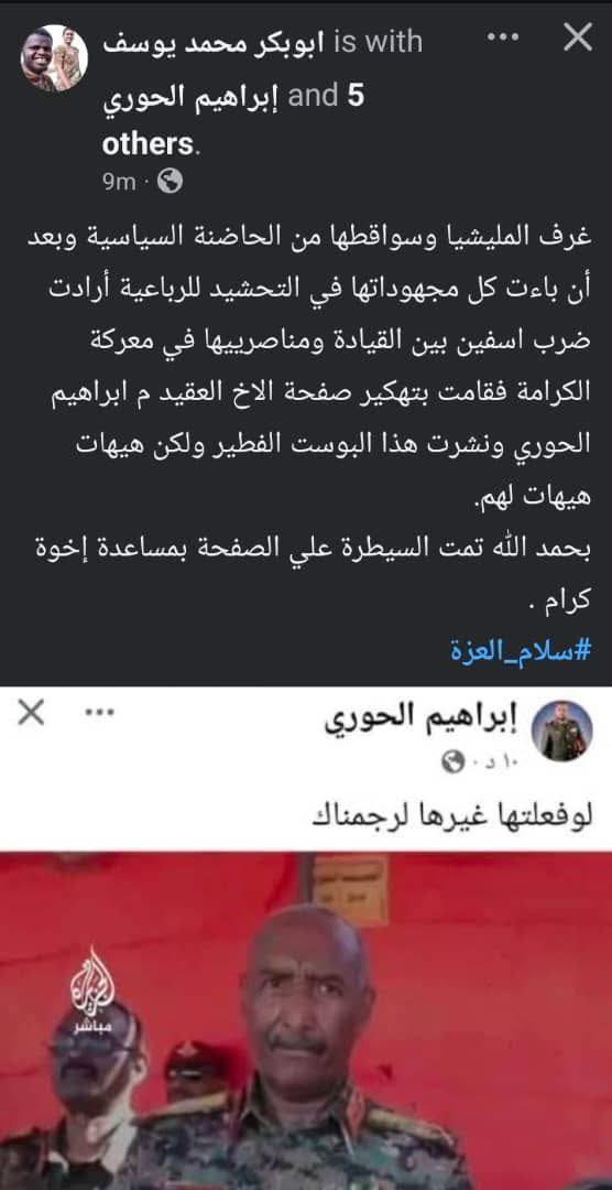 ولعتوا حرب ودمرتم بلد بكاملها والناس شايفة تهديداتكم وعروضكم العسكرية اللي انكرتوها وقلتوا قحت قالت الاطاري او الحرب بقت على دي يعني ؟