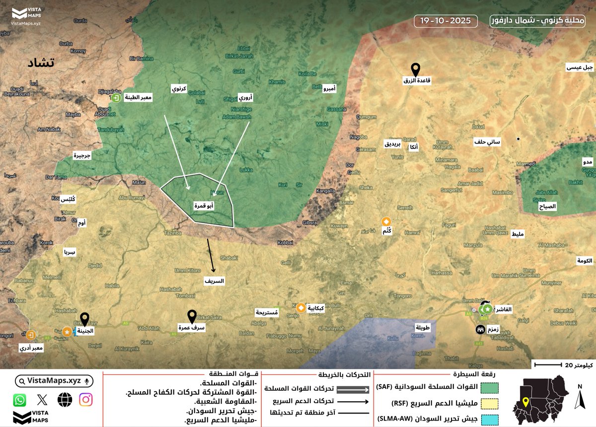 ◉ نفذت القوات المسلحة ضربات بطائراتها المسيرة Akıncı على مواقع وتجمعات مليشيا الدعم السريع في قاعدة الزرق وسرف عمرة ومدينة الجنينة، بعد رصد وصول تعزيزات للمليشيا في هذه المناطق وكانت تستعد للمشاركة في معارك أبو قمرة.