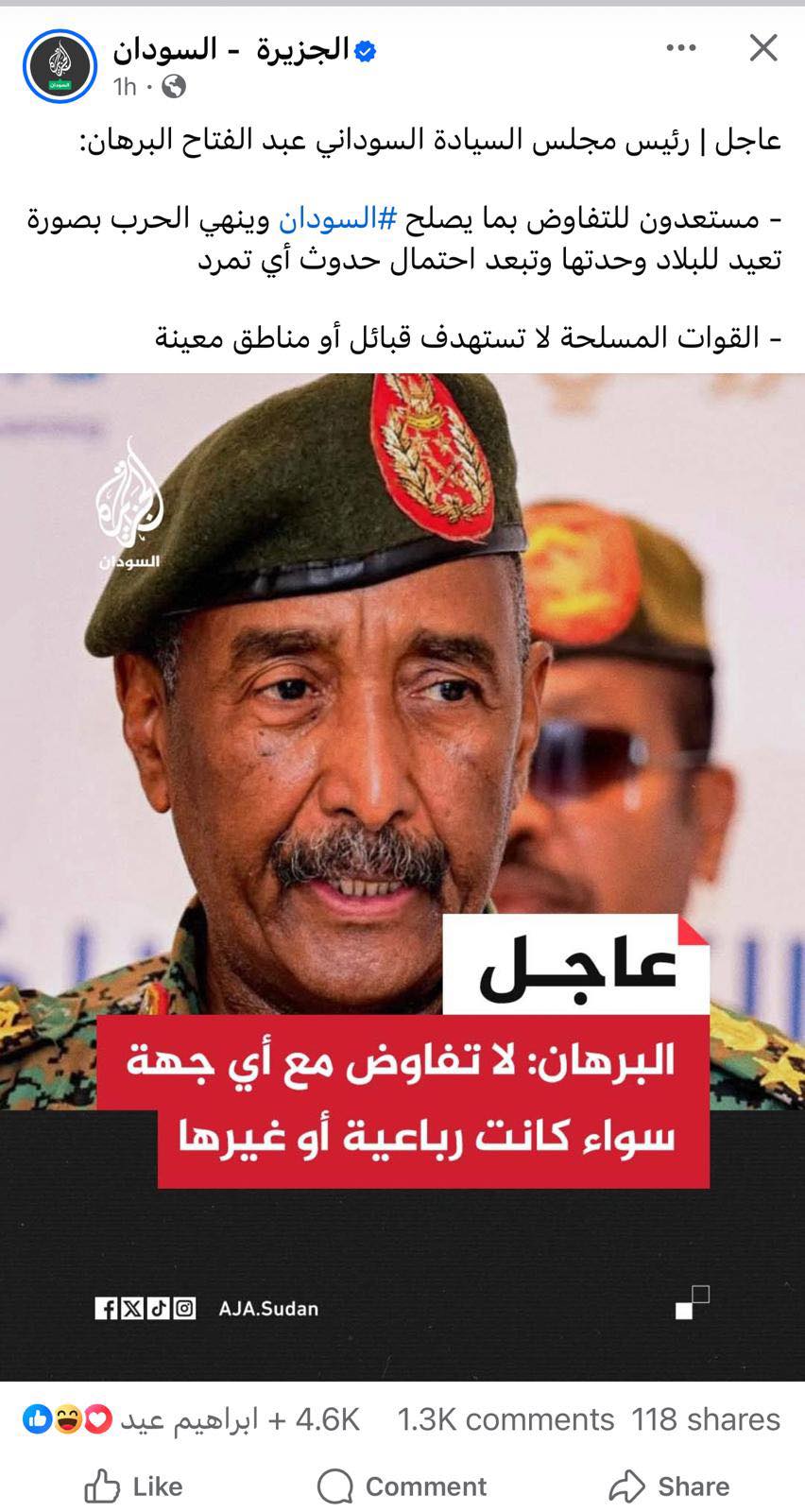 الامر ليس بيد البرهان ولا بيد الجيش والا توقفت الحرب في يومها الثاني دون ان يقتل او يهجر سوداني واحد .