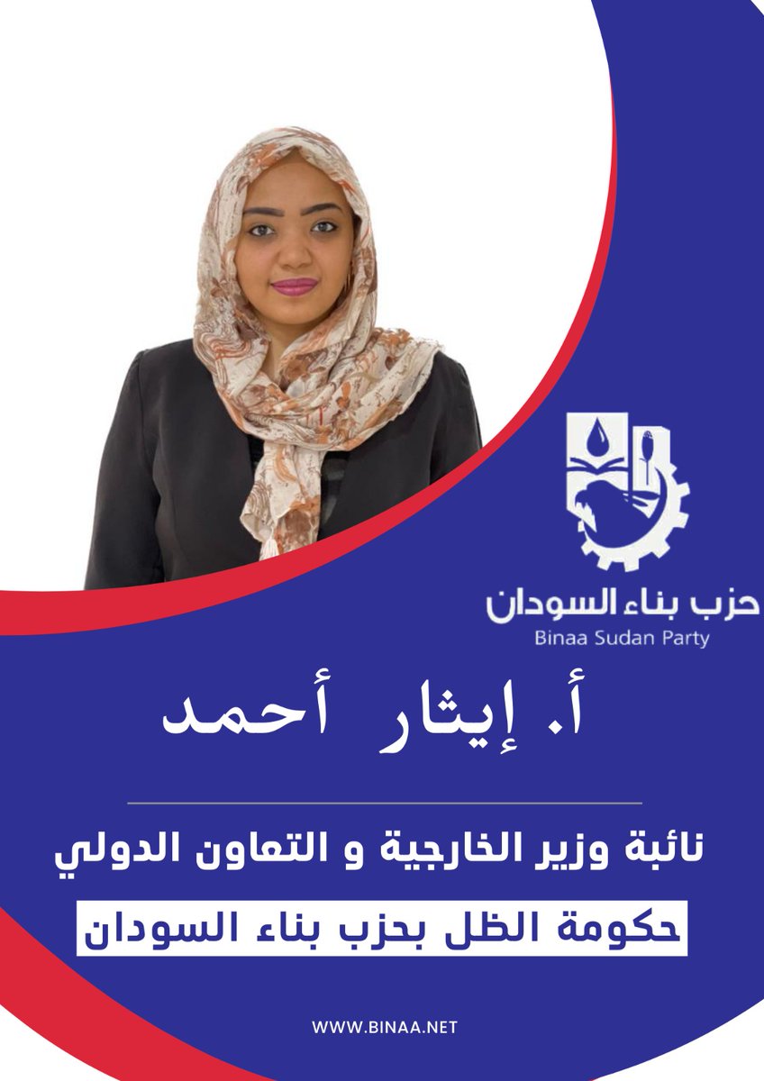 وقع الاختيار على الأستاذة إيثار أحمد الشيخ لشغل منصب نائبة وزير الخارجية في مجلس وزراء الظل في #حزب_بناء_السودان وبادرت مهامها على الفور