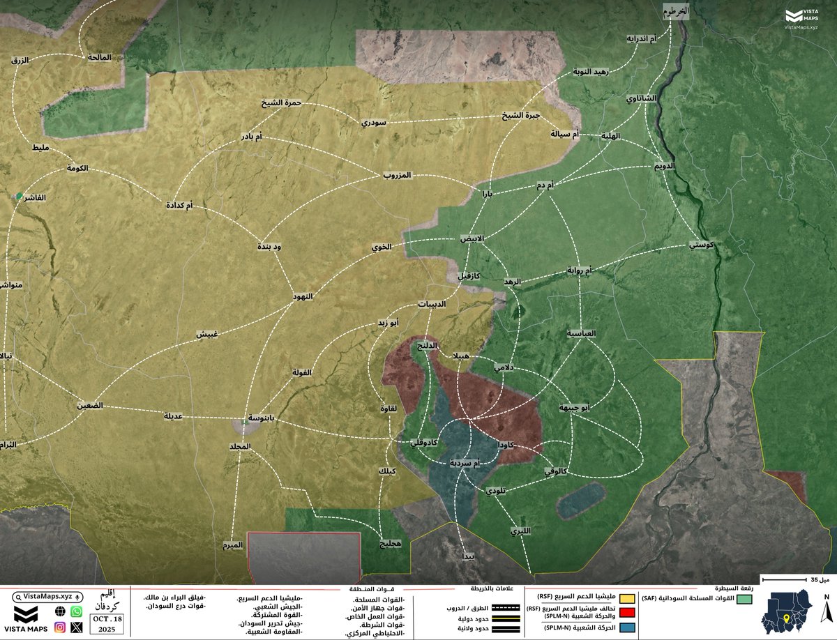 Vista خريطة السيطرة في إقليم كردفان، حيث تدور المعارك الحاسمة التي ترسم ملامح مستقبل ا… By null Published October 20, 2025 Share SHARE Facebook Twitter Pinterest LinkedIn خريطة السيطرة في إقليم كردفان، حيث تدور المعارك الحاسمة التي ترسم ملامح مستقبل السودان. Source by VISTA Facebook Twitter Pinterest LinkedIn Share This Article Facebook Twitter Email Print Previous Article ما حقيقة الادعاء المتداول بأن رئيس البرلمان في تشاد دعا معارضي الرئيس إلى التمرد… Next Article The fair will bring together influential politicians and businessmen from 7 to 8… Leave a Comment Leave a Reply Cancel replyYour email address will not be published. Required fields are marked *Comment * Name * Email * Website Save my name, email, and website in this browser for the next time I comment. Δ SearchSearchRecent Postsكم عدد المجموعات التي تصنع الفوضى في العالم..وماهو مدى ومصدر قوتها؟ مجموعات صغير… ماشاء الله تبارك الله، مستواه أعلى منهم بكثير ، ننتظر منه ميداليات في الأولمبيا… بهدف محاربة أمراض الملاريا وحمى الضنك.. وزارة الصحة بولاية سنار تطلق حملة لمكافح… شاهد.. معاناة إنسانية لنازحي الفاشر القادمين إلى طويلة بشمال دارفور المصدر: منسق… لحظة تدمير الطائرة المُسيّرة في مدينة «الأبيض» من قبل دفاعات القوات المسلحة الس… Recent CommentsNo comments to show.