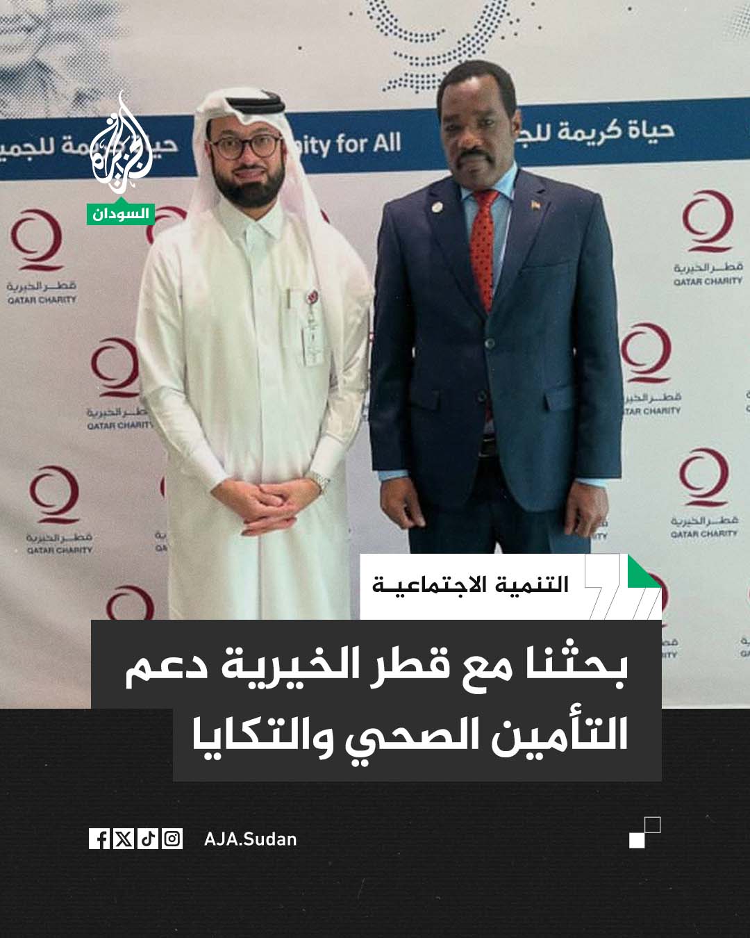 وزير الموارد البشرية والرعاية الاجتماعية معتصم أحمد: ناقشنا مع مؤسسة قطر الخيرية دعم برامج التأمين الصحي للفقراء والنازحين عبر تمويل التغطية الصحية الشاملة وتمويل المشروعات الصغيرة للأسر ودعم مبادرات التكايا