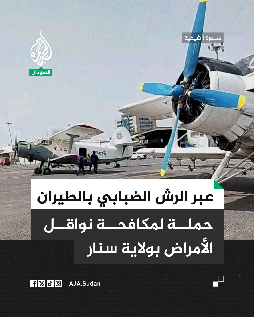 بهدف محاربة أمراض الملاريا وحمى الضنك.. وزارة الصحة بولاية سنار تطلق حملة لمكافحة نواقل الأمراض عبر الرش الضبابي بالطيران