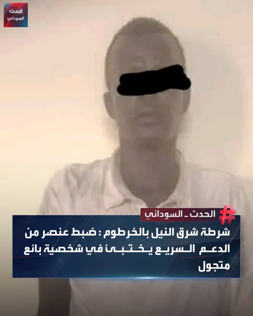 أعلنت شرطة محلية شرق النيل بولاية الخرطوم أن المباحث الجنائية تمكنت من ضبط عنصر من عناصر الدعم السريع ، بمحطة البقالات بمنطقة عد بابكر،كان يختبئ في شخصية بائع متجول