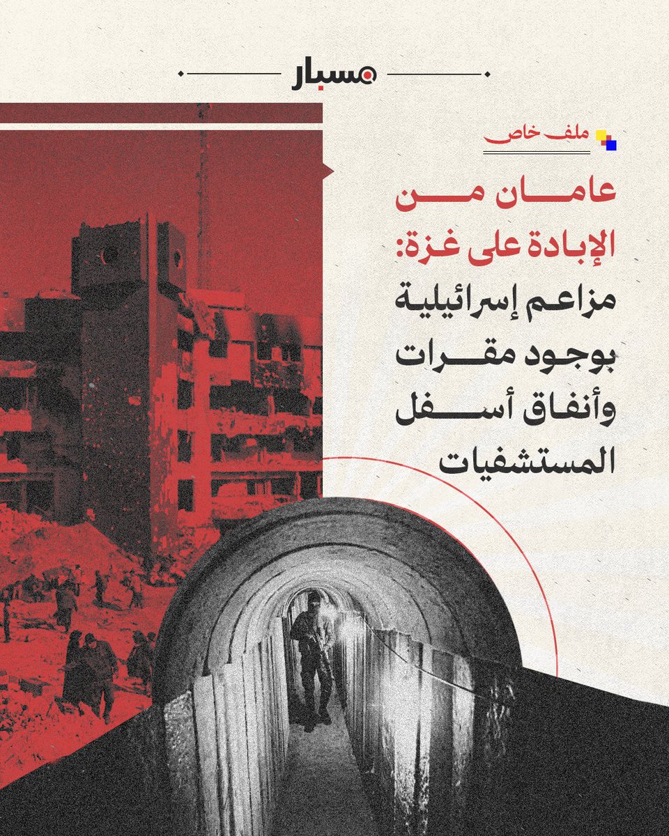 📍 إسرائيل تواصل عبر أذرعها الحكومية والعسكرية، ووسائل إعلامها، ومؤثريها ترويج مزاعم متكررة لتبرير استهداف المستشفيات بزعم وجود “مقرات عسكرية” و”أنفاق تابعة لحركة حماس”.