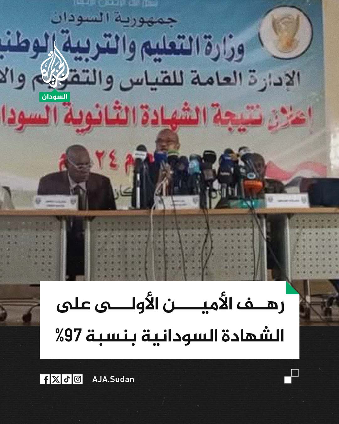 حقَّقت نسبة 97%.. وزارة التعليم والتربية الوطنية تعلن حصول الطالبة رهف الأمين الطيب البشير على المرتبة الأولى بالشهادة السودانية للدفعة المؤجلة للعام 2024