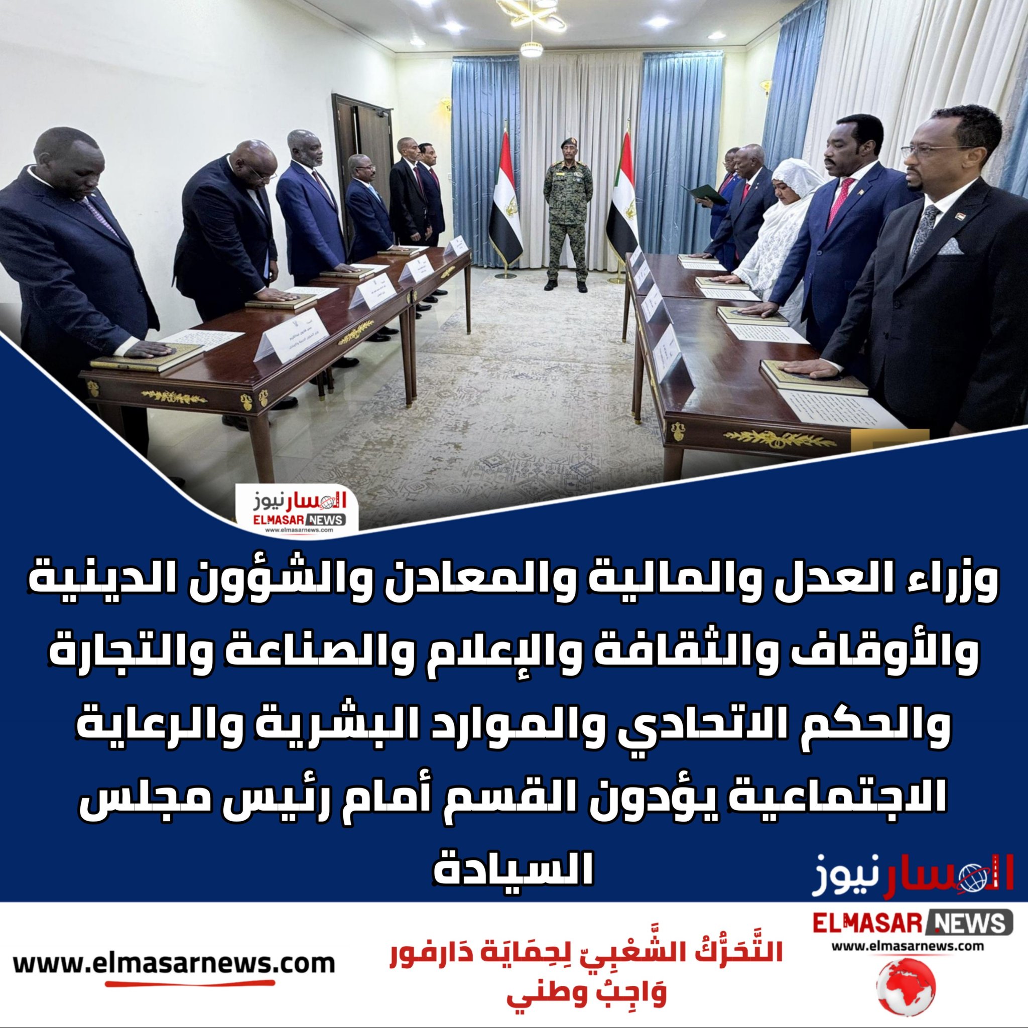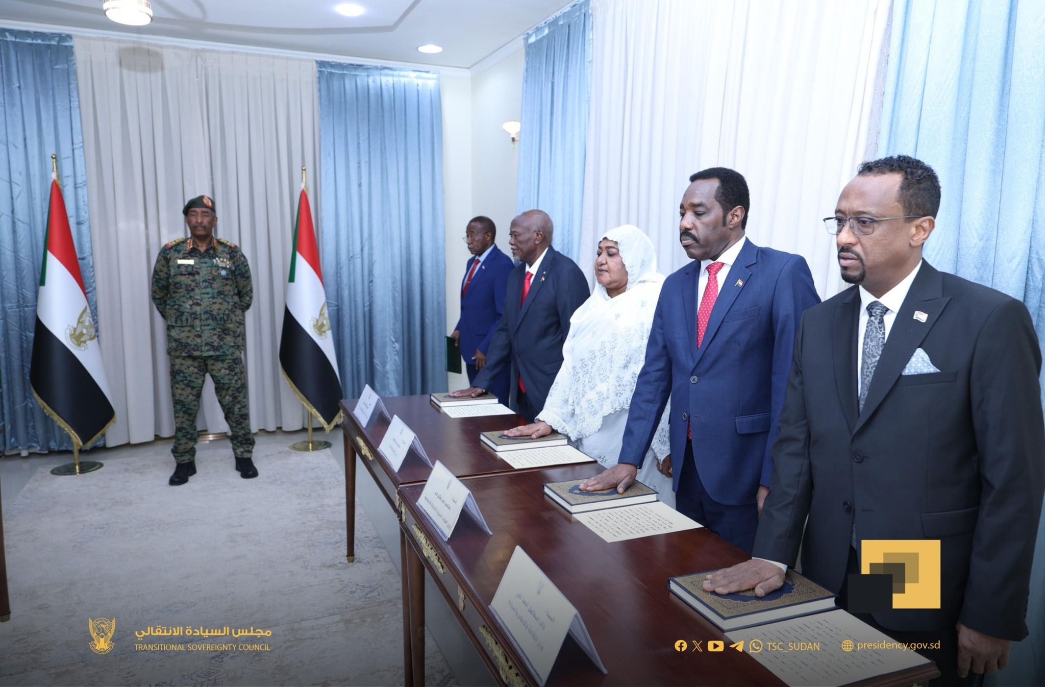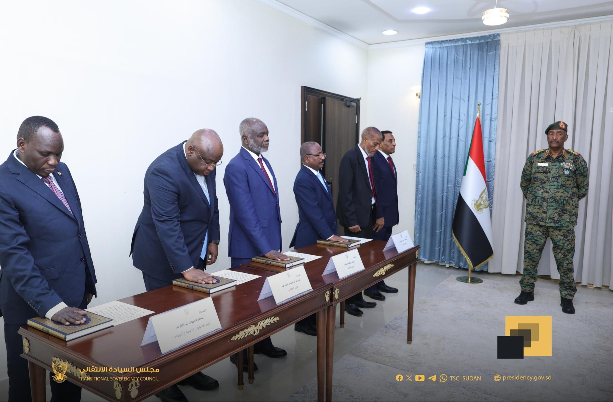 *وزراء العدل والحكم الاتحادي والمالية والمعادن والصناعة والتجارة والشؤون الدينية والأوقاف والثقافة والإعلام والموارد البشرية والرعاية الاجتماعية يؤدون القسم أمام رئيس مجلس السيادة*