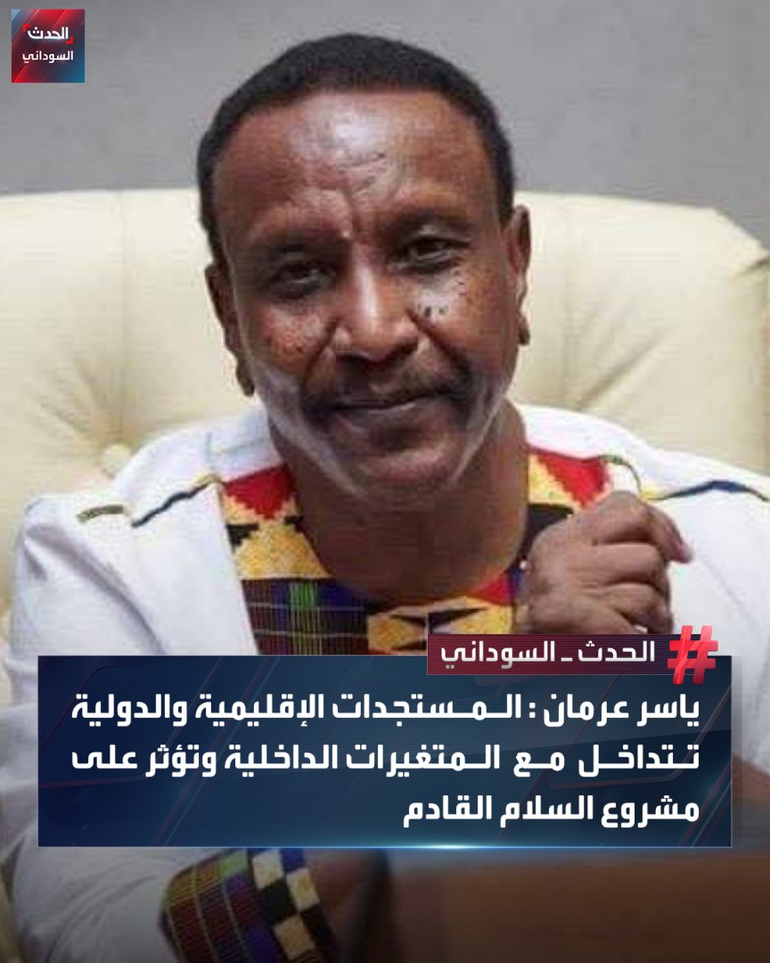 قال رئيس الحركة الشعبية التيار الثوري الديمقراطي ياسر عرمان، إن المتغيرات العميقة حولنا والمستجدات الإقليمية والدولية تتداخل مع المتغيرات الداخلية وتؤثر على مشروع السلام القادم وإمكانية استدامة السلام والتنمية والديمقراطية.