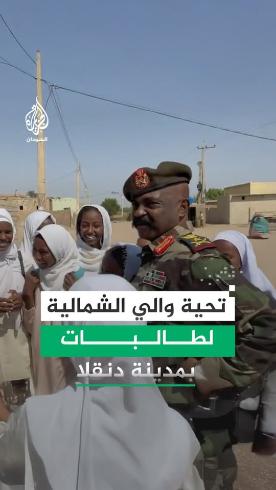 والي الشمالية عبد الرحمن عبد الحميد يترجّل من سيارته لتحيّة طالبات من المرحلة الابتدائية في حي مراغة بمدينة دنقلا بالولاية الشمالية شماليّ السودان