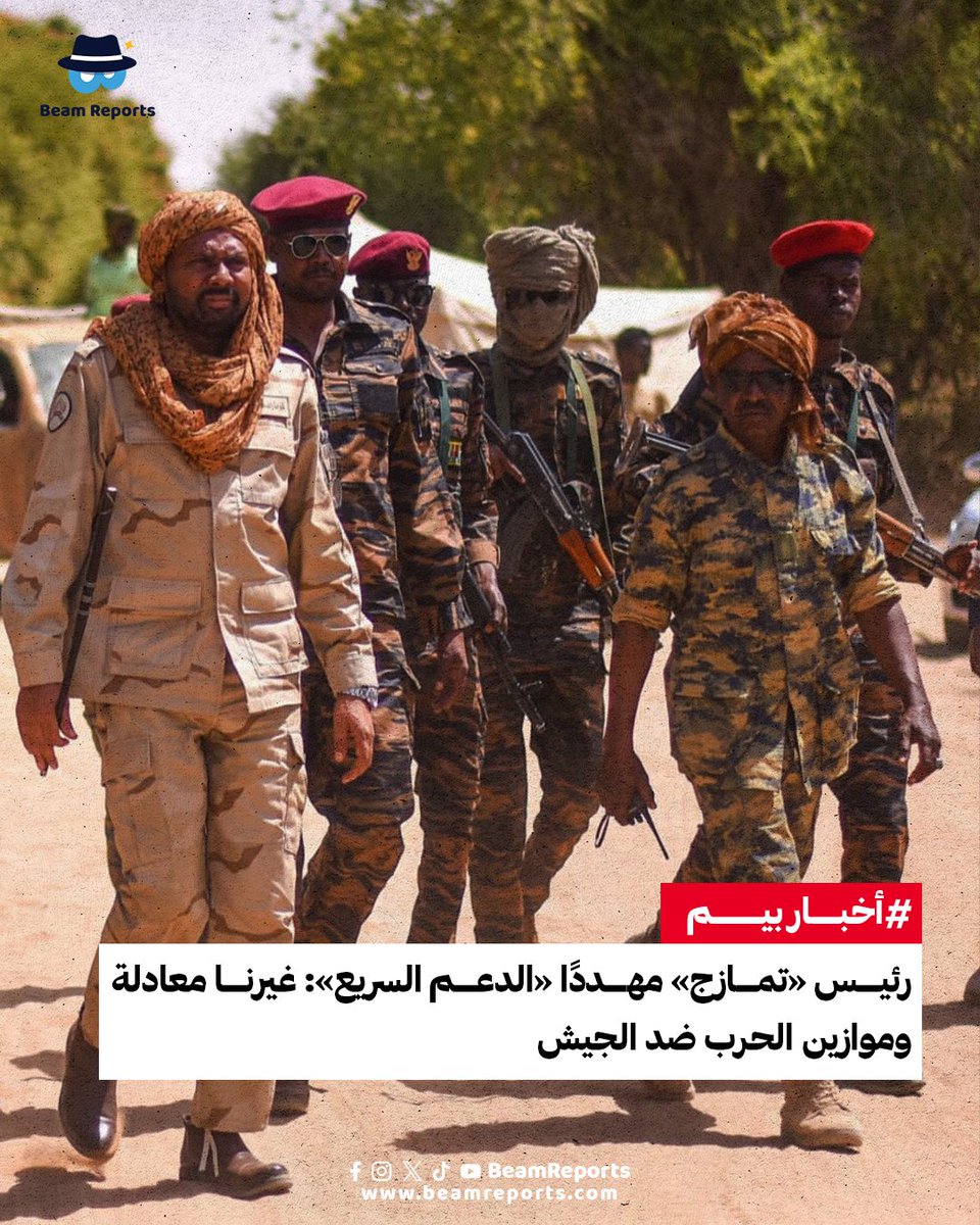 أطلق رئيس الجبهة الثالثة «تمازج»، محمد علي قرشي، الخميس، تهديدات غير مسبوقة ملمحًا باتخاذ موقف عسكري مناوئ لقوات الدعم السريع، مشيرًا إلى أن قواته غيرت موازين الحرب ضد الجيش. واتهم قرشي قوات الدعم السريع بالتخلي عمن وصفهم بشركاء الدم في هذه الحرب، مشيرًا إلى أنها أغفلتهم واستعانت بشركاء سياسيين.